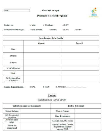 Vous hésitez sur le choix du mode de garde ? merci de compléter les 2 fiches de renseignements.